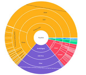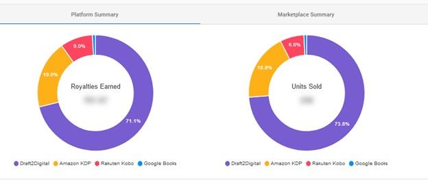 These graphs are great, but they’re showing Draft2Digital, which I use for multiple platforms (and for some books for all platforms), instead of the actual places where the sales happened. Since sales don’t happen on Draft2Digital, I know that 71% of my royalties/73.8% of my sales are likely happening on downstream retailers that D2D publishes to.