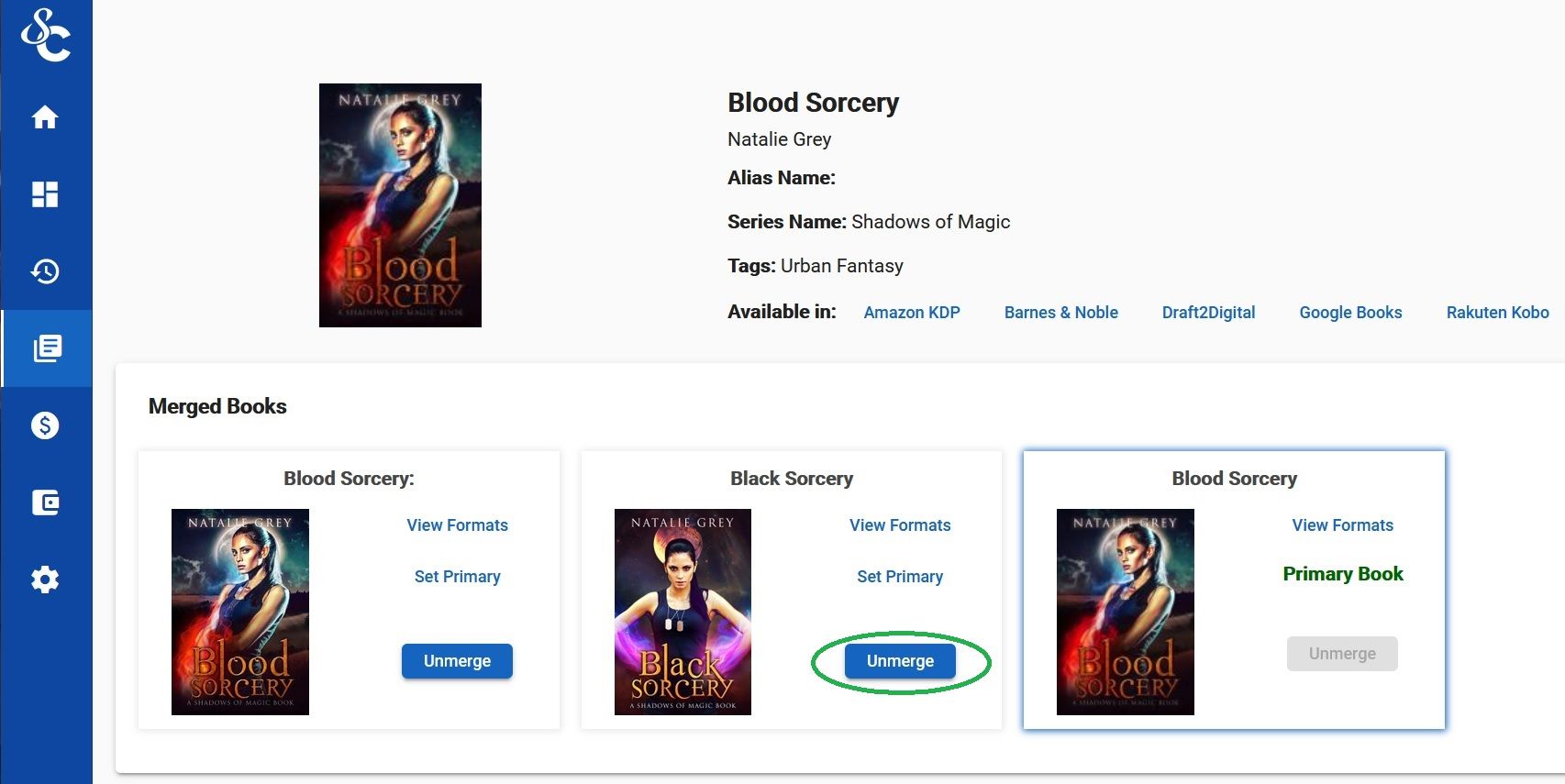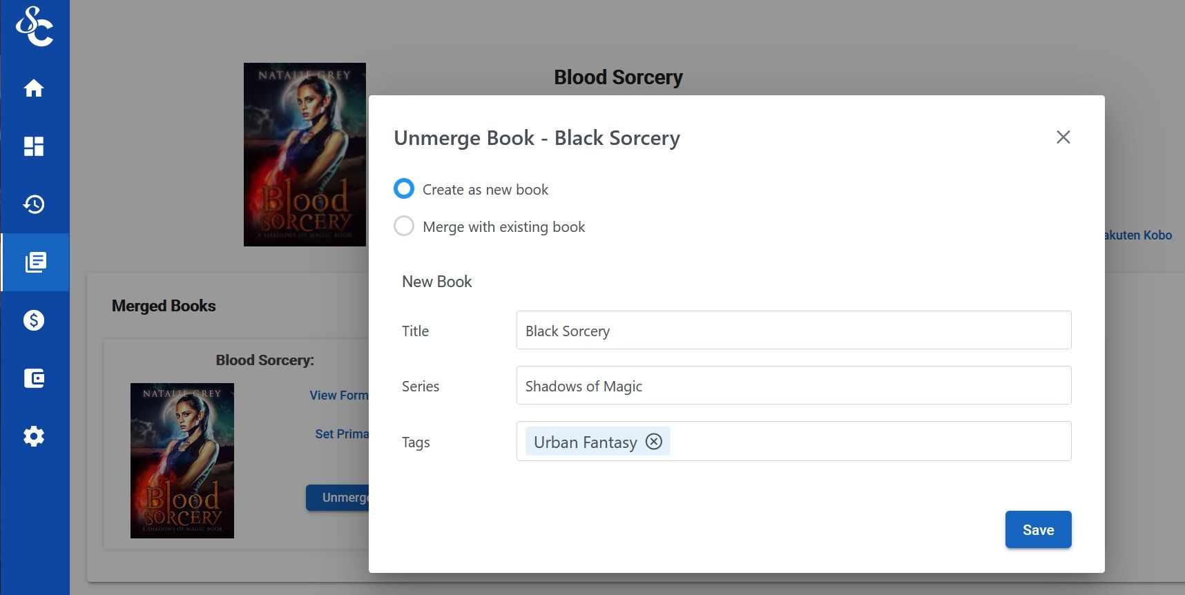 If you click on a book from your bookshelf, the book-specific page will now have a "merged books" section, allowing you to un-merge different pieces. So, for instance, if I had accidentally merged an incorrect book in, I would be able to see it and un-merge just that one book.