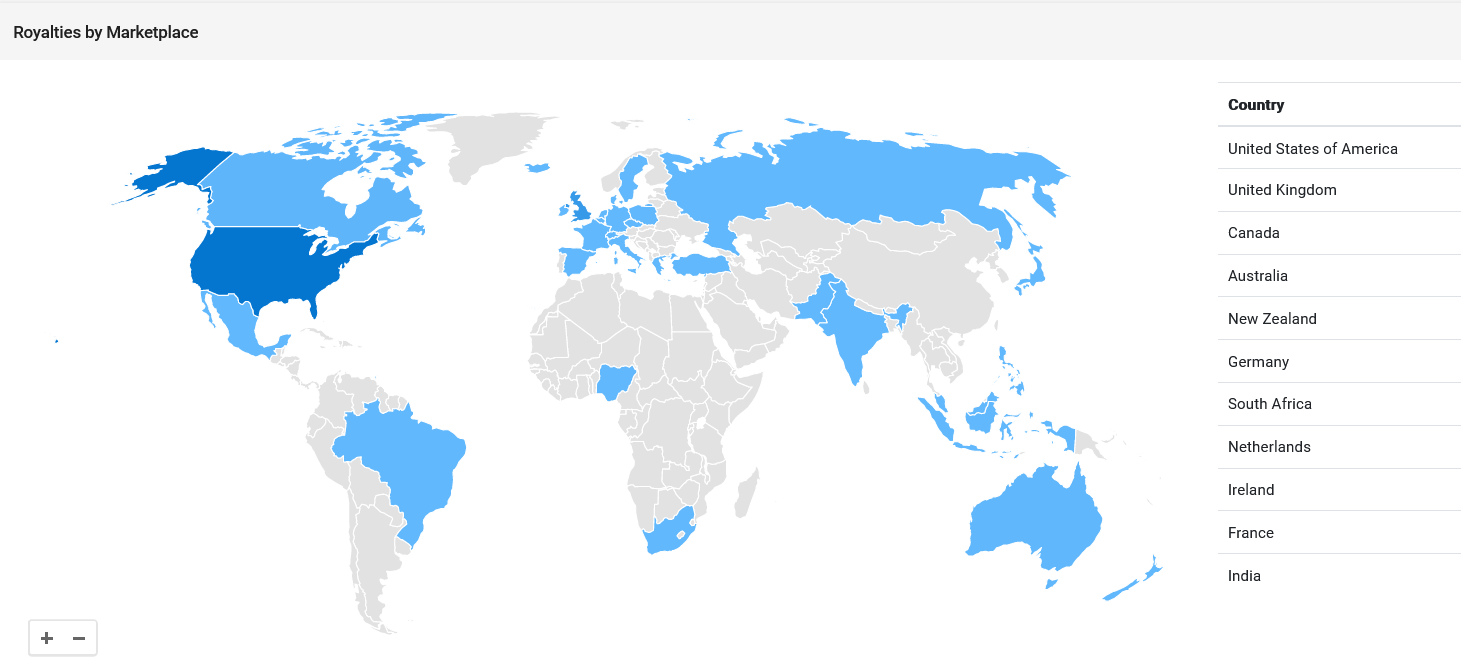 - Spreadsheet (Platform, Total-Royalties, Total-Expenses, Ebook, PB, HC, KENP, Kobo Plus, Other. All R&U.