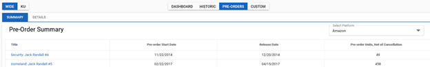 Pre-Orders: (Summary, Details)