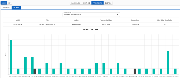 Details: Book Selection, ASIN, Title, Author, Start Date, End Date, Units Net of Cancellation